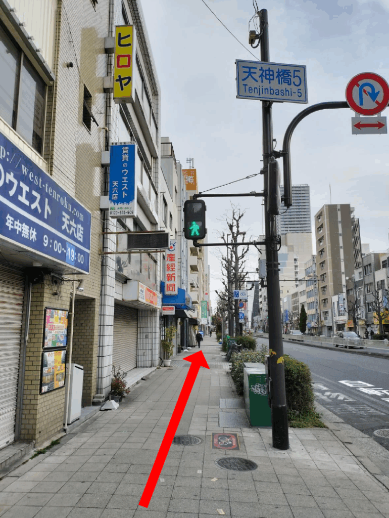 6)天神橋5の標識も超えてください。