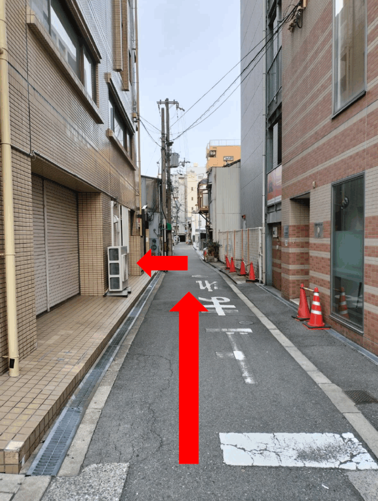 3)信号を超えてから一つ目の曲がり角を右に入ります。